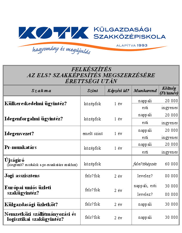 Továbbtanulás a KOTK Külgazdasági Szakközépiskolában
