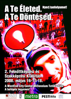 A Feln?ttk?pz?si ?s Szakk?pz?si Ki?ll?t?st m?jus 16-18-?n rendezik a budapesti WestEnd City Center Millennium tet?terasz?n. K?zel hatvan ki?ll?t? t?bb sz?z tanfolyamaj?nlattal v?rja a l?togat?kat. Naponta nyerem?nysorsol?st tartanak a szervez?k, amelyek alkalm?val ?rt?kes tanfolyamokat, k?nyveket ?s egy?b, a ki?ll?t?k ?ltal felaj?nlott aj?nd?kokat sorsolnak ki a ki?ll?t?s l?togat?i k?z?tt.
